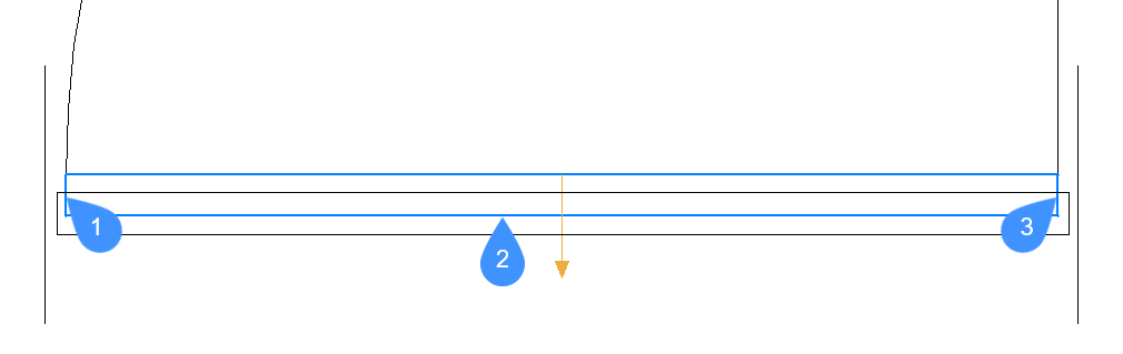 Pour cet exemple, la sélection par défaut inclut la ligne inférieure et les deux lignes latérales du rectangle. Voir les lignes en surbrillance marquées de 1, 2 et 3 dans l'image ci-dessous.