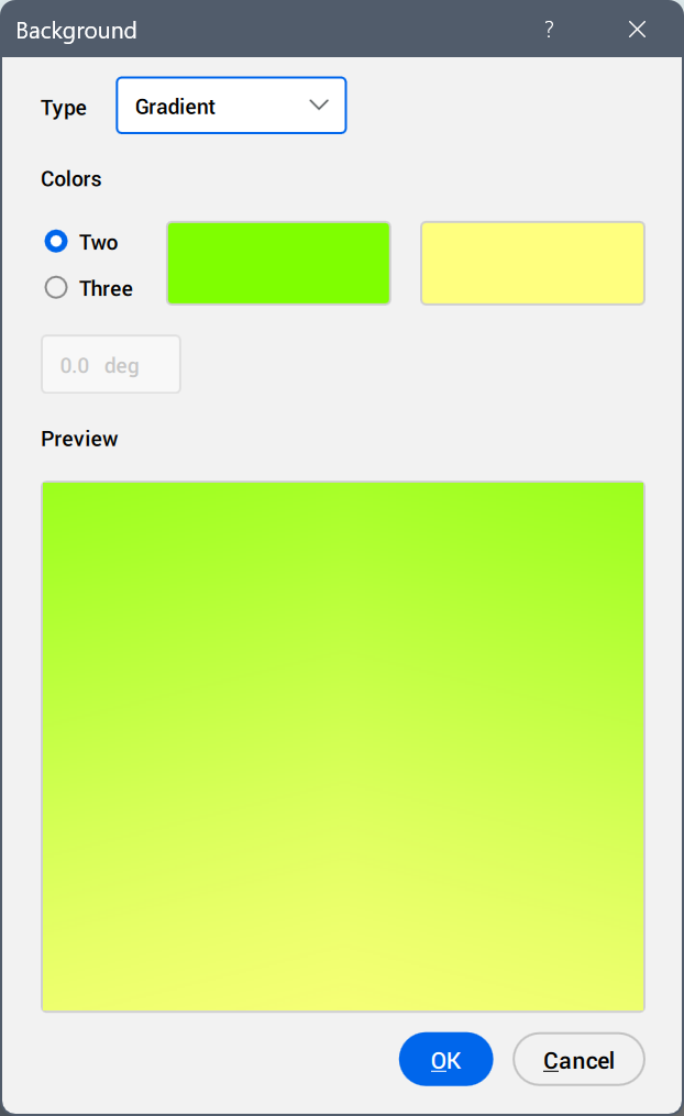 Le type Dégradé applique un dégradé de deux ou trois couleurs à la fenêtre actuelle.