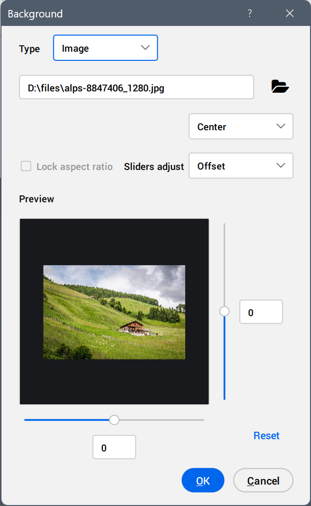 - Ajuste le décalage et/ou l'échelle de l'image dans la fenêtre. Déplacez les curseurs ou saisissez une valeur dans les champs.