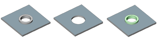 - Réparation via l'épaississement de l'un des côtésRemarque : Tolreparer restaure le modèle solide 3D d'une pièce en tôle en épaississant l'un de ses côtés. Toutes les faces d'épaisseur deviennent perpendiculaires aux faces de tôles.
