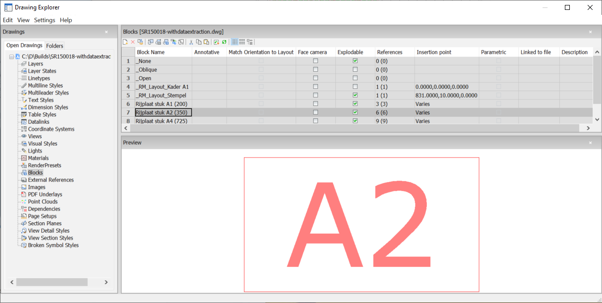Nota: Il numero totale di inserimenti di blocco include i riferimenti di blocco su layer congelati o disattivati.