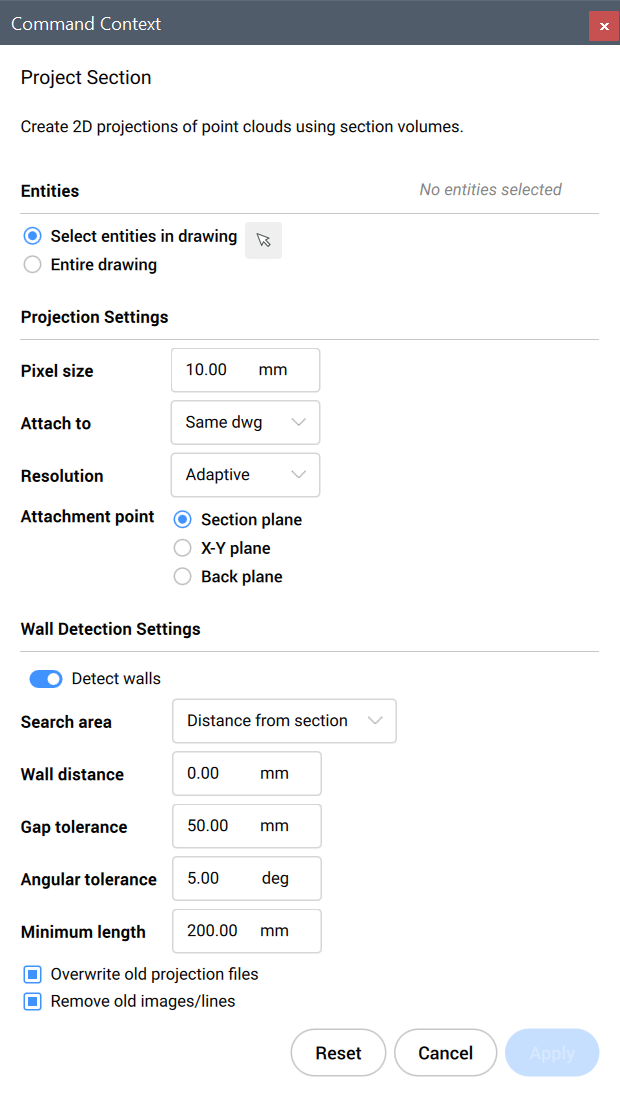 - Rileva tutti i muri nelle nuvole di punti. Questa opzione viene spesso utilizzata per generare planimetrie.