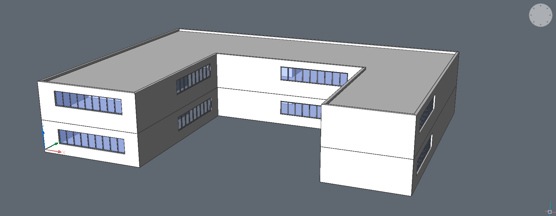 - 前回の手順で作成したファイルを選択します。外部ファイルの複合材と窓のパラメータが新しいファイルにコピーされます。図面は以下の通りです: