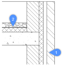 - 建物を縦方向に切断する断面を作成し、壁(1)と屋根スラブ(2)の接合部を見てみます。