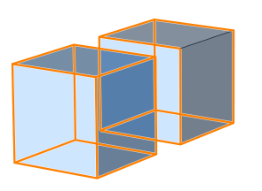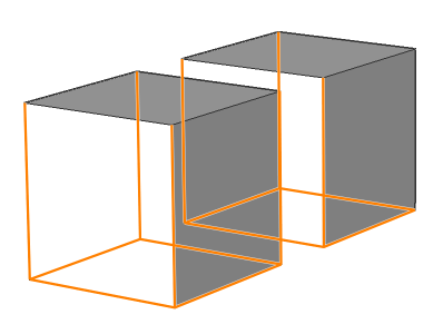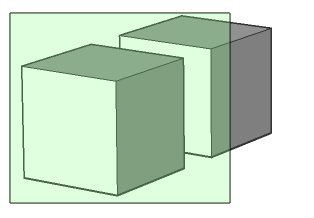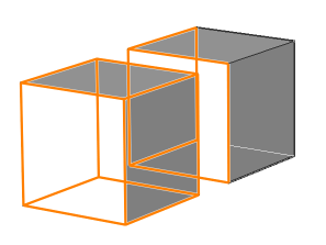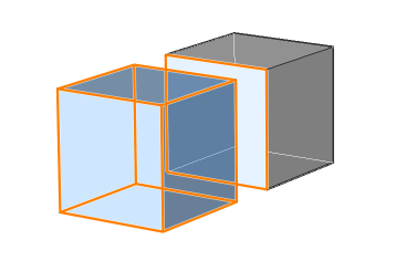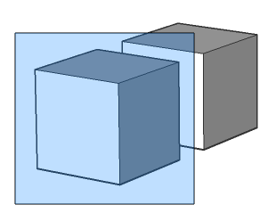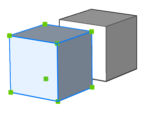 青色の選択ウィンドウは完全に左の立方体を覆っており、従ってこの立方体のみが、モデル内で選択されます。