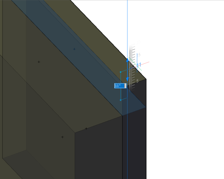 - Tabを押して、ソリッドの底面など別の参照面を使用し、ダイナミック入力フィールドに値を入力します。