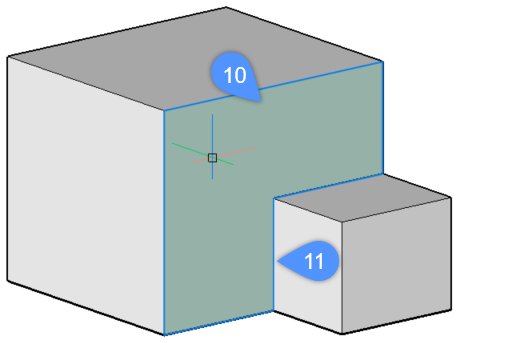下の例では、正面のソリッドの上面がハイライトされています(12)。