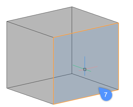- ソリッド面をハイライト表示するには、マウスを動かし面の上にカーソルを置きます。ハイライトされた面はオレンジ色(7)で表示されます。面を選択するには、面がハイライトされている状態で左クリックします。複数の面を選択するには、1つずつ左クリックします。