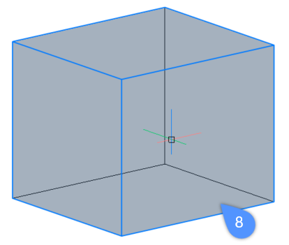 - ソリッドをハイライト表示するには、Ctrlを押しながら面の1つにカーソルを合わせます。ソリッドが青色(8)で表示されます。ソリッドを選択するには、ソリッドがハイライト表示されているときにそのソリッドを左クリックします。複数のソリッドを選択するには、1つずつ左クリックします。