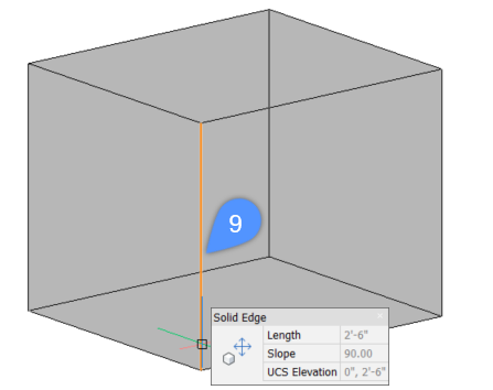 - エッジをハイライト表示するには、Ctrlを押しながらエッジの上にカーソルを置きます。エッジがオレンジ色(9)で表示されます。エッジを選択するには、エッジがハイライト表示されている状態で左クリックします。複数のエッジを選択するには、1つずつ左クリックします。