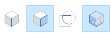 選択モードでは、選択プレビューでどのサブ図形(面、エッジ、境界線)をハイライト表示するかをコントロールし、選択することができます。