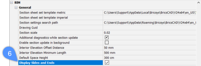線形要素のBimSides/Endsを表示するには、設定ダイアログボックスでDISPLAYSIDESANDENDSシステム変数を使用するか、コマンドラインでDISPLAYSIDESANDENDSシステム変数を1に設定します。