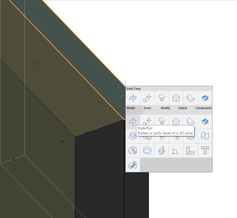 - 面がハイライトされたら、クワッドのモデルコマンドグループでプッシュ/プルを選択します。
