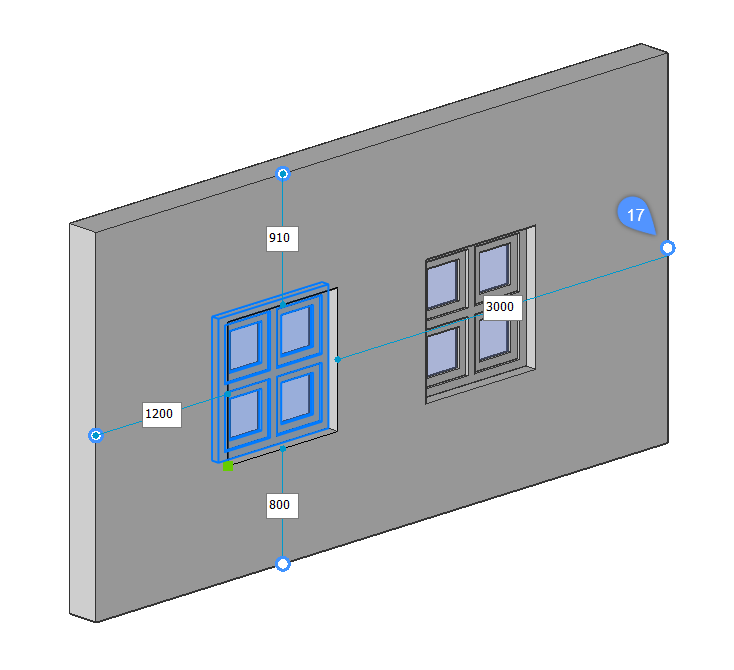 ウィンドウを壁ソリッドの面に移動させます。