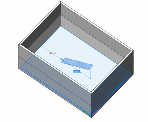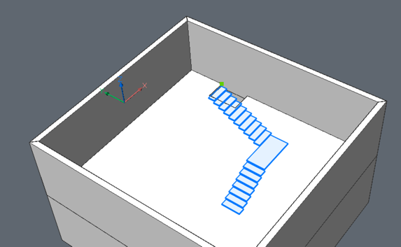 - 2階のスラブのエッジにカーソルを合わせます。階段カーソルは自動的にこのスラブのエッジにスナップします。左クリックして階段を作成します。