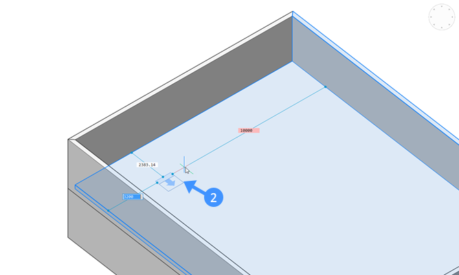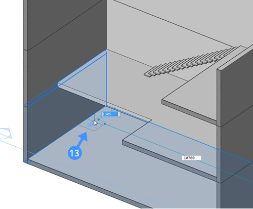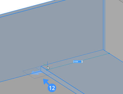 - スラブのエッジ付近に階段カーソルを置きます(12)。カーソルが自動的にエッジの外側にスナップします。