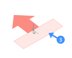 - スラブの上にカーソルを合わせてみてください。階段のカーソル(2)が表示され、階段カーソルが乗っているスラブがハイライト表示されます。これは最初のステップの位置を示しています。カーソルの位置が無効な場合は、カーソルが赤く(3)なります。