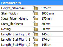 | Ideal_Riser_Height | 理想的な蹴上げの高さ。階段を作成するとき、実際の蹴上げは、理想的な蹴上げと階段の高さに基づいて計算されます。これにより、蹴上げは、理想的な蹴上げにできるだけ近づくように等分割されます。 |