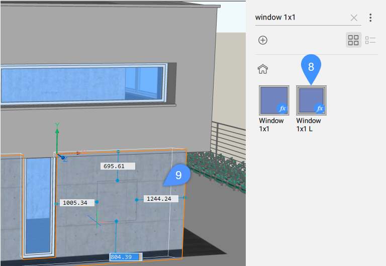 - ドラッグ&ドロップして窓を壁に配置します(9)。