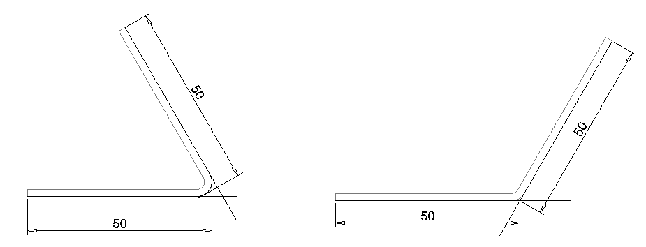 詳細:鋭角と鈍角の接線方向のベンド展開長補正を計算する方法