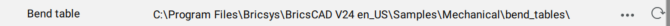 - さまざまなツールを使用して板金部品を作成する場合、DieWidthパラメータを使い1つのベンドテーブルでこれらを記述することができます。BricsCADインストールフォルダーの\Samples\Mechanical\bend_tablesにあるサンプルのベンドテーブルをご活用ください。 Note: このフォルダーへの書き込み権限が制限される場合があります。このような場合、フルアクセス権を持つ別のフォルダーにベンドテーブルをコピーする必要があります。