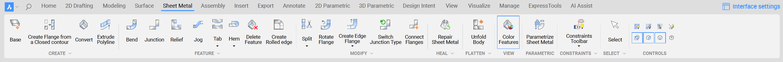 SMPARAMETRIZE [パラメトリック] | 選択した板金部品に対して一貫した3D拘束のセットを作成します。 | |