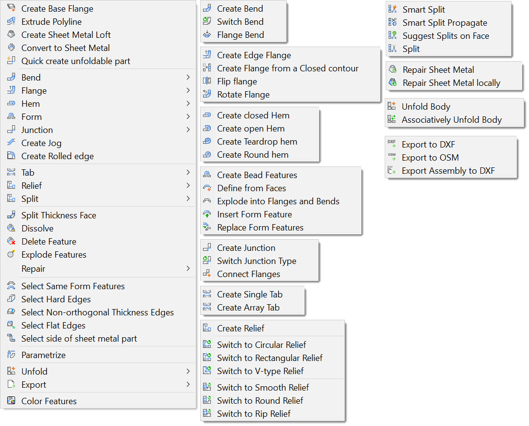 SMREPAIR [板金を修復] | 板金部品の特定の問題を修復します。グローバルワークフローとローカルワークフローの両方がサポートされています。必要に応じてロフトベンドフィーチャーを修復します。隣接するベンドをマージし、フランジとの接線接続を提供します。 |