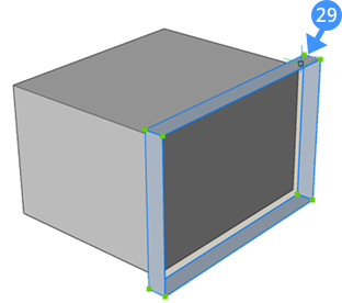 下の図は、図面中の選択された2D図形(28)を押し出して作成されたサーフェス(29)を示しています。