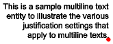 - マルチテキストのテキストブロックの最大幅を、矩形の対角コーナーを指定することによって決定します。