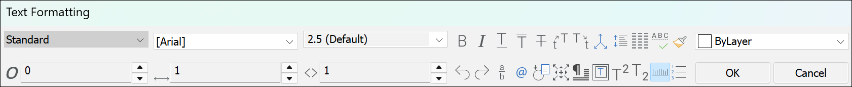OK | 文字の書式設定ツールバーを閉じ、変更を適用します。 |