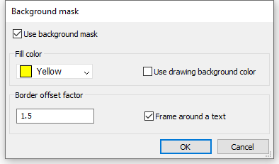- 境界オフセット率を指定し、背景のテキスト周りのマージンを定義します。この値は文字の高さに基づいており、1~5の範囲内でなければなりません。1.0のファクターは、マルチラインテキスト図形に適合します。
