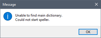 有効な辞書が見つからない場合は警告メッセージが表示されます。SPELLコマンドを参照してください。