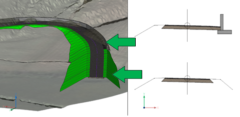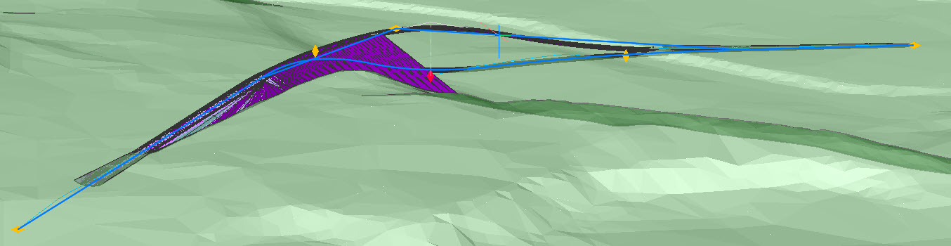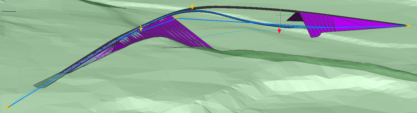 - コリドーが基準とする3Dアライメントを選択し、グリップポイントを移動させてコリドーを水平方向に編集します。