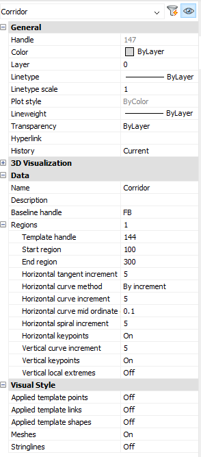 - リージョン開始測点を入力します。ENTERを押して最初から開始するか、コリドーをスタートさせたい任意の測点を入力します。
