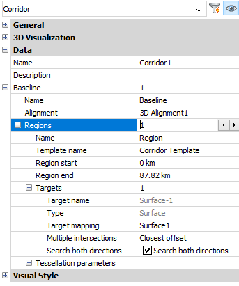 - コリドーのベースラインとして使用する3Dアライメント(2)を選択します。