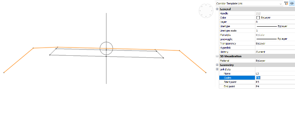 作成後、ターゲットはコリドーテンプレート要素ポイントから図面上のコリドーモデルにマッピングする必要があります。そのためには、図面の中で、コリドーの個々のターゲットを表す図形を選択します。この作業をターゲットマッピングと呼びます。
