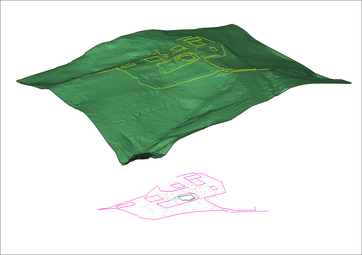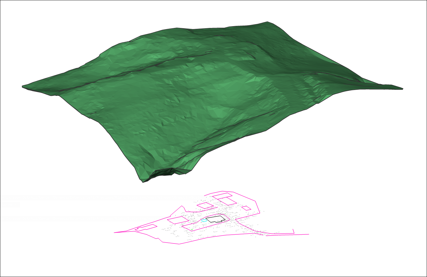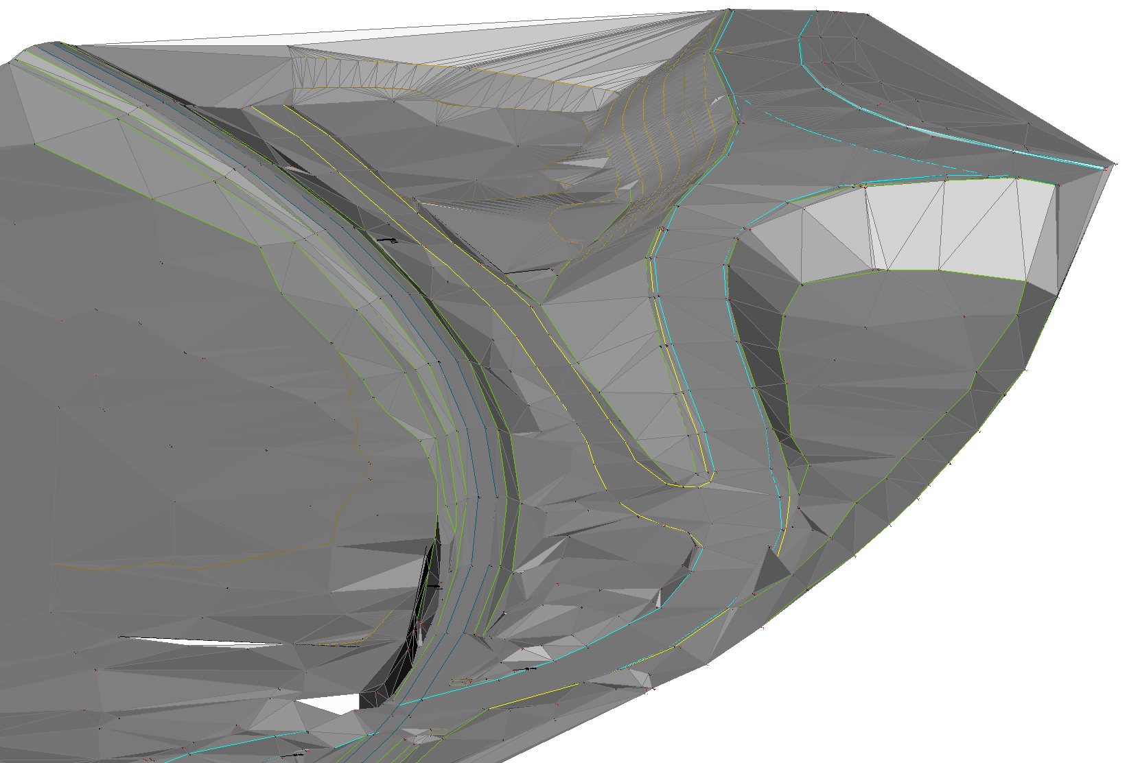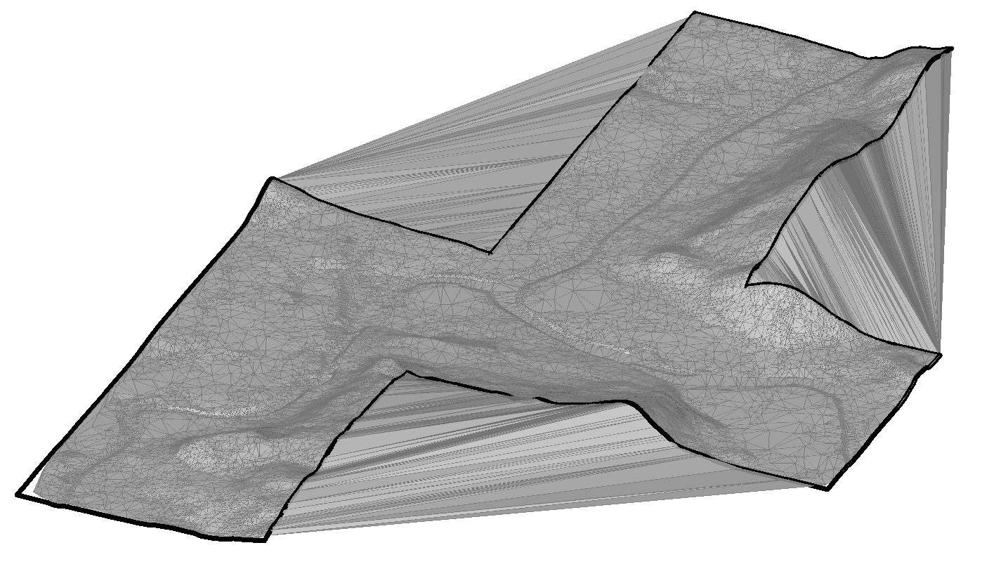 画像は、87350ポイントの点群から作成された元のTINサーフェスを示しています。