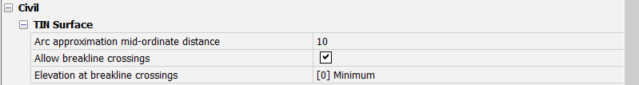 11:TINサーフェス、グレーディング、コリドーの自動調整を有効にします。