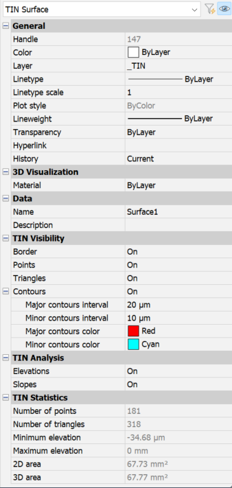 TINサーフェスのプロパティ