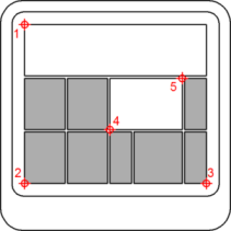 - デジタイジングタブレットオーバーレイの(5)の位置にあるマークをクリックします。