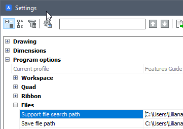 設定ダイアログの次のステップとして、設定 ‐ プログラムオプション - ファイルで、ファイルサーチパスにフォルダーサポートを追加します。