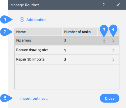 ルーチンの管理ダイアログでは、ルーチンを管理することができます。