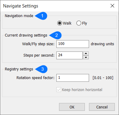 ナビゲート設定ダイアログボックスでは、図面のナビゲーション設定を調整することができます。