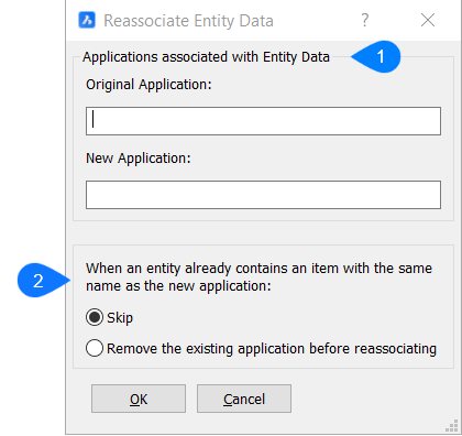拡張データの関連性を再作成ダイアログボックスでは、拡張された図形データを特定のアプリケーションに関連付けることができます。