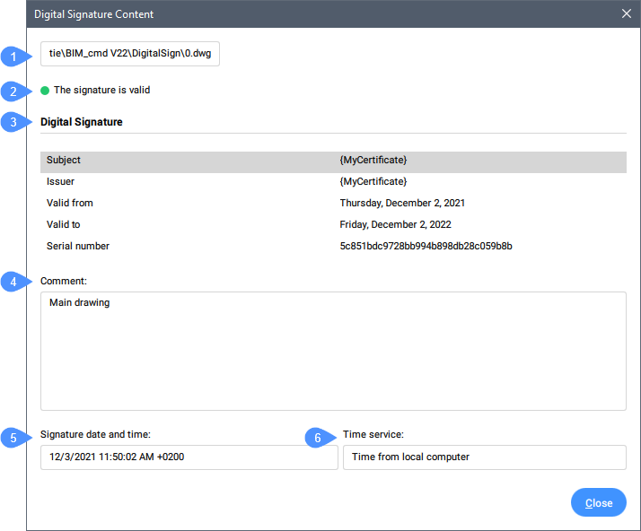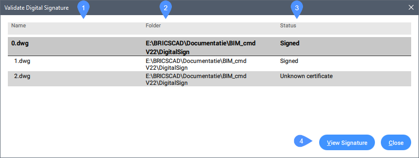 図面とその外部参照に対するすべてのデジタル署名の状態を表示します。