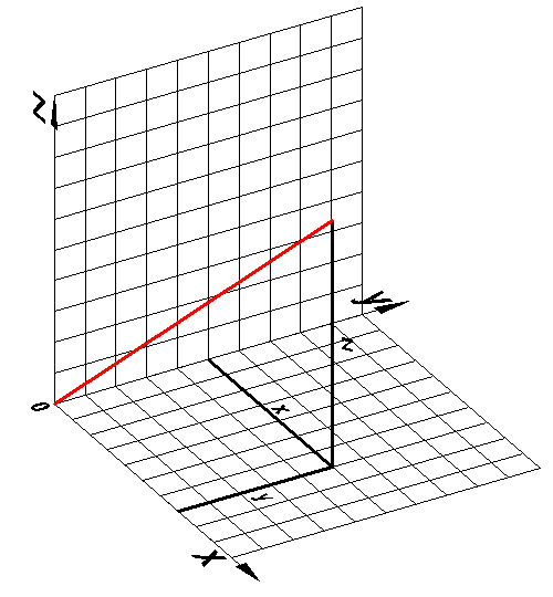 直交座標系ではX軸、Y軸、Z軸の3つの直交する軸を使用します。3軸とも座標系の原点を基準点としています。x軸とy軸は水平面を定め、x軸とz軸もしくはy軸とz軸は垂直面を定めます。点はYZ面、XZ面、XY面との距離で定義されます。これらの距離を点のXYZ座標と呼びます。