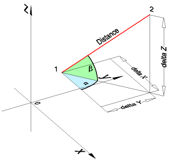 距離、XY平面の角度(α)、XY平面からの角度(β)