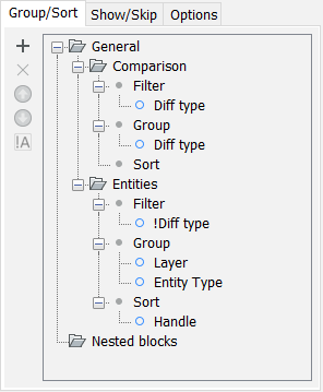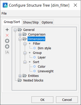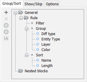 - グループは、フィルターで選別された図形が構造ツリー上にどのように表示されるかを定義します。グループ内の項目の順序により、構造ツリーの分岐が入れ子になります。