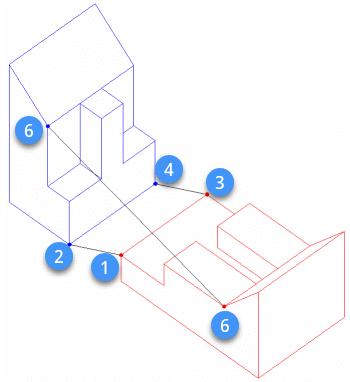 8. 参照する図形の3点目の目的点(6)にスナップします。