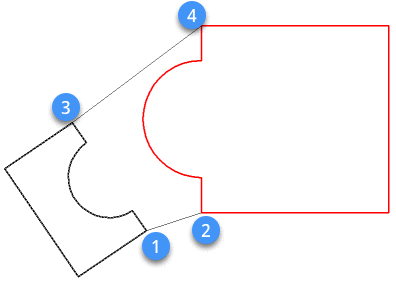 ALIGNコマンドを使用すると、図面内の既存の図形に対して選択セットを再配置できます。選択セットは1回の動作で移動、回転されます。必要に応じて、新しい位置でフィットするように元図形の尺度変更もできます。